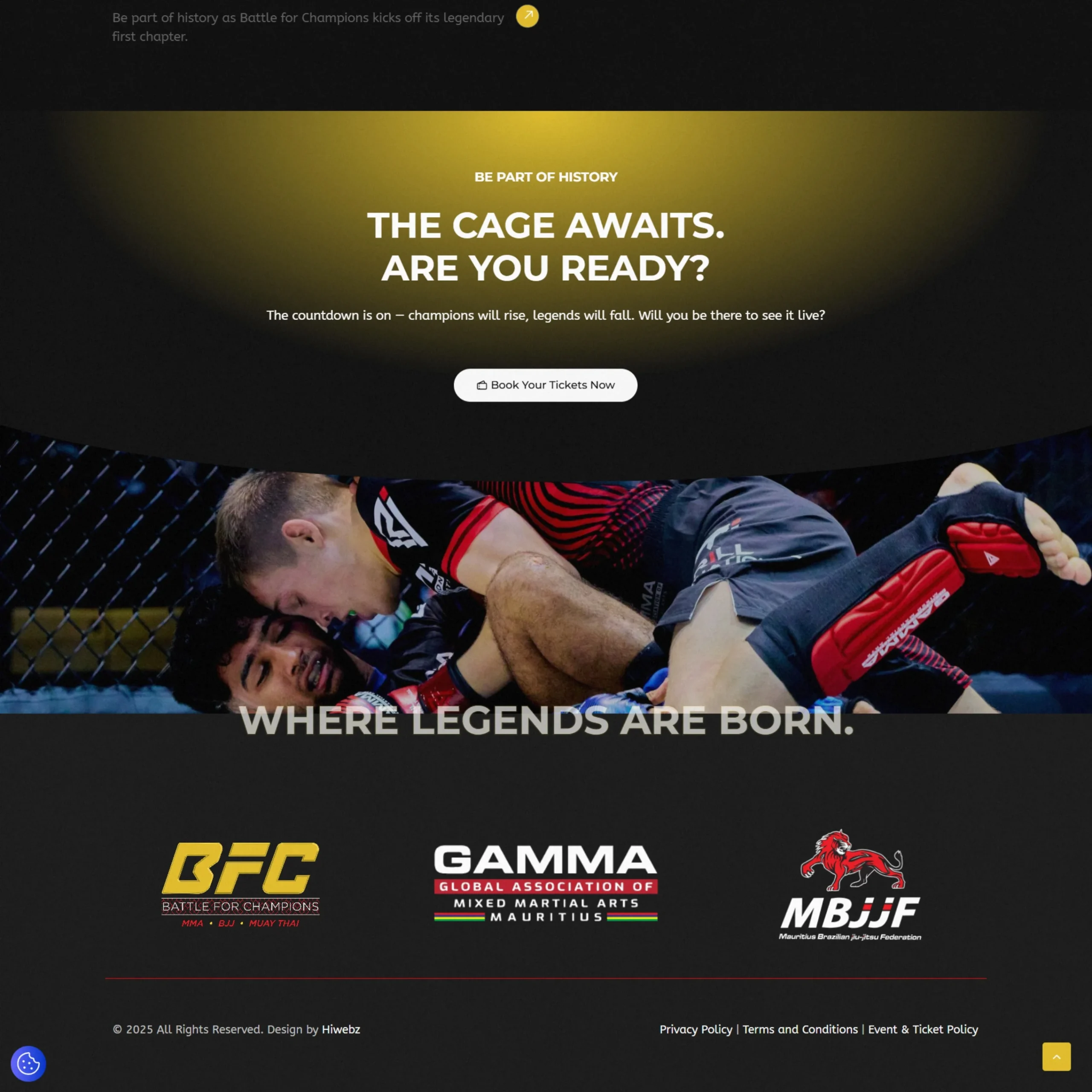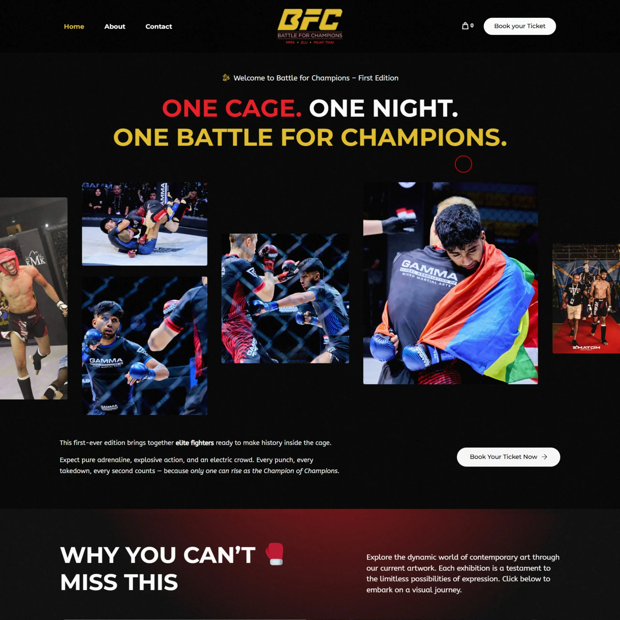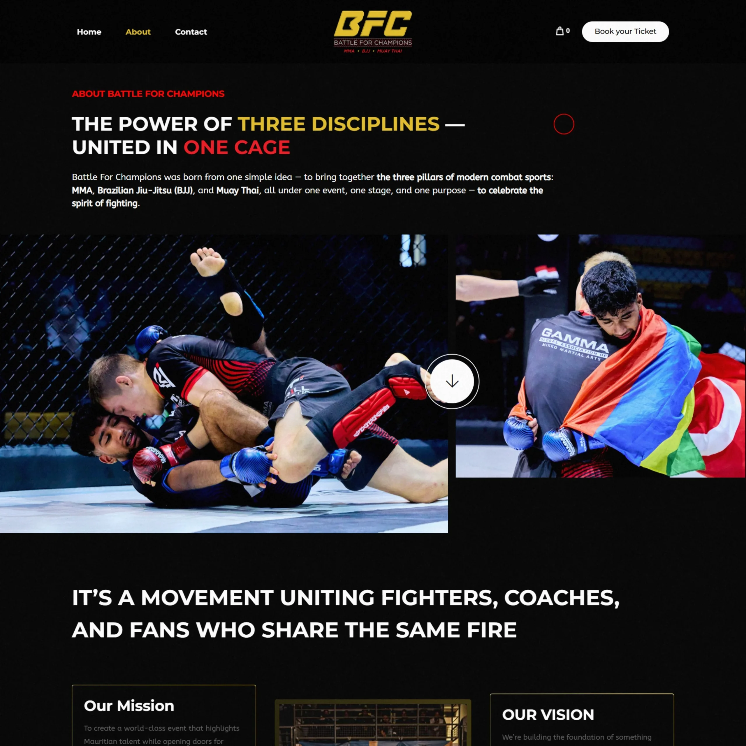 The website was designed to be the digital headquarters of the competition, where fans, fighters, and supporters could discover the event, get hyped, and secure their spot in the arena.More than just a landing page, the platform serves as the gateway to the full BFC experience — from ticket sales to event access.